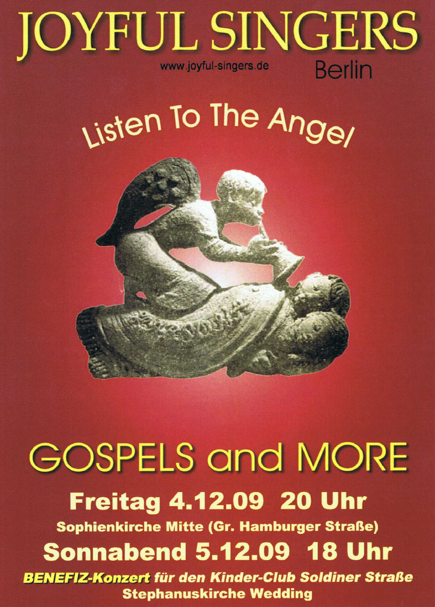 Die Joyful Singers haben sich seit ihrer Gründung im Jahr 2000 ein umfangreiches, vielschichtiges Repertoire erarbeitet; neben Stücken aus der Spiritual- und Gospeltradition finden sich auch Kompositionen zu eigenen Texten ("Listen To The Angel"). Die Begleitung der bis zu achtstimmigen Sätze mit Piano, Bläsern, Percussion und anderen Instrumenten übernehmen Mitglieder des Chores selbst. Kurze Einführungen vermitteln die Inhalte der Titel.