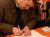 <Kümmere dich> kümmert sich seit zwei Jahren. Nach dem ersten, so der ehemalige Vorsitzende, stand die Frage, ob es was gebracht hat. Nach dem Zweiten, was erreicht wurde. Es sind gut 20 Gäste gekommen, das Altersheim, die Polizei, der Sozialist Wieland, die Vertretung des Bürgermeisters. Die Mischung stimmt: es sind alle Bürger suchtgefährdet und betroffen. Sie machen sich von diesem Verein aus auf den Weg, holen sich Informationen für Fachbetreuung und sprechen miteinander. Ich bin, erklärt der bisherige Vereinsvorsitzende, jetzt Geschäftsführer, selbst rückfällig geworden. Der Vorstand ist zusammengebrochen, wir mussten uns um uns selbst kümmern. Wir wollen damit nicht hinter dem Berg halten. Wir sind auch angegriffen worden hier, bedroht, aber wir haben uns Hilfe geholt und sind geblieben. Der neue Vorsitzende ist noch ganz jung, schlaksig, offen. Es ist der Sohn des bisherigen. Er unterschreibt den neuen Mietvertrag zu diesem Anlass. Dann lädt er zum Buffet ein. Ein Mann probt Balalaika. Danach beginnt das Konzert. Der Adventskalender 2009 hat begonnen.